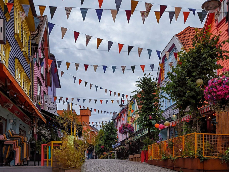 Stavanger’s Old Town offers a unique glimpse into the past with its well-preserved wooden buildings. As you wander the cobblestone streets, you’ll experience a sense of history that’s hard to match. The historic area is an absolute must-see, with over 170 whitewashed cottages dating from the turn of the 18th century. The roses and well-manicured gardens fronting these homes add a touch of color to the area.